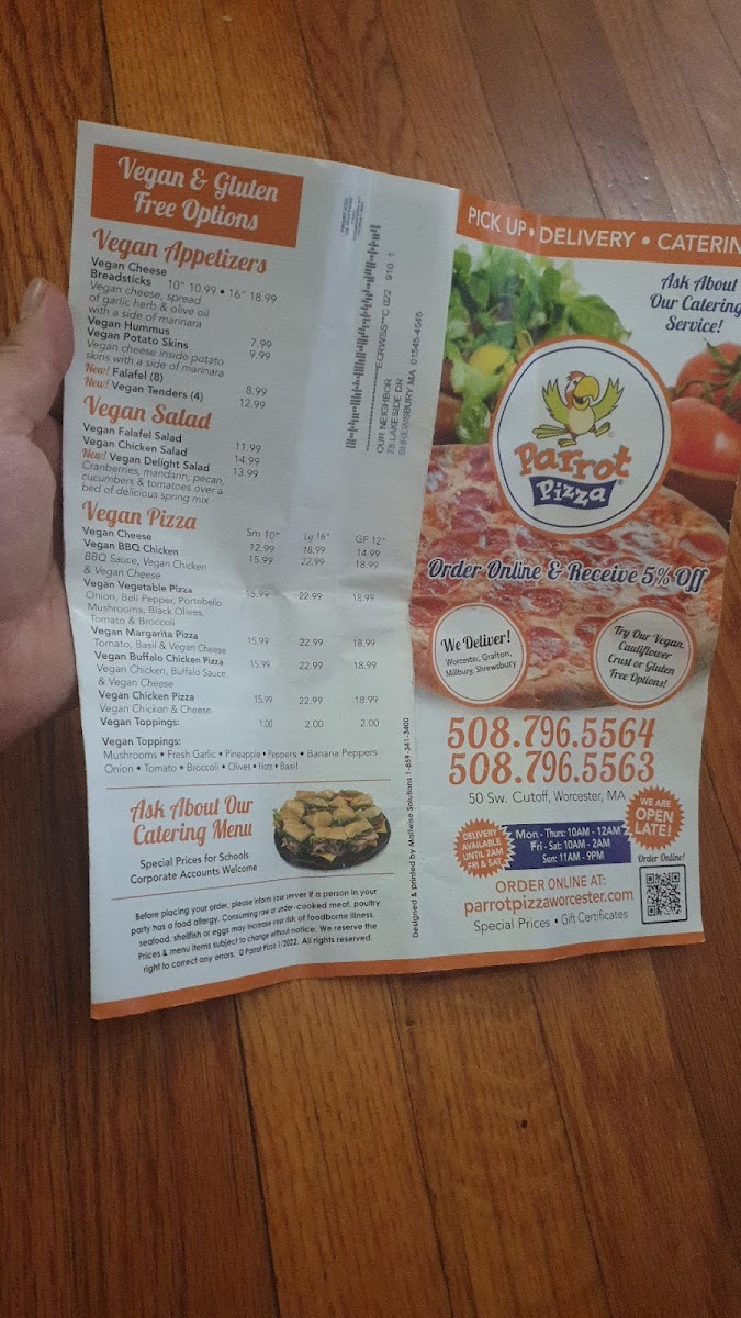 Welcome to Parrot Pizza Worcester, your go-to destination for delightful pizzas in the heart of Worcester, MA. Located at 50 SW Cutoff, this charming eatery is dedicated to serving up classic favorites with a twist. The menu features a selection that’s sure to please any pizza lover.